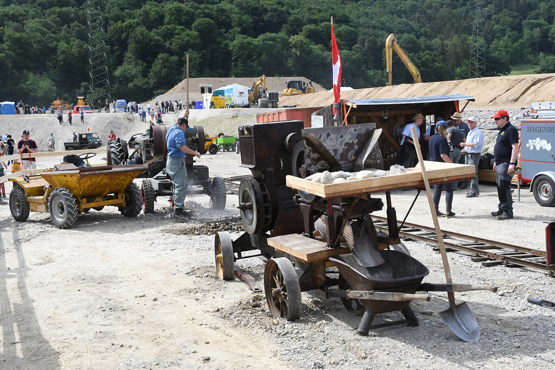 Die Kiesgrube bebt wieder: Rund 200 historische Baumaschinen, knatternde Kipper und das Neuste aus der Baumaschinen- und Lastwagenwelt werden auf der Deponie und im Kieswerkareal gezeigt.