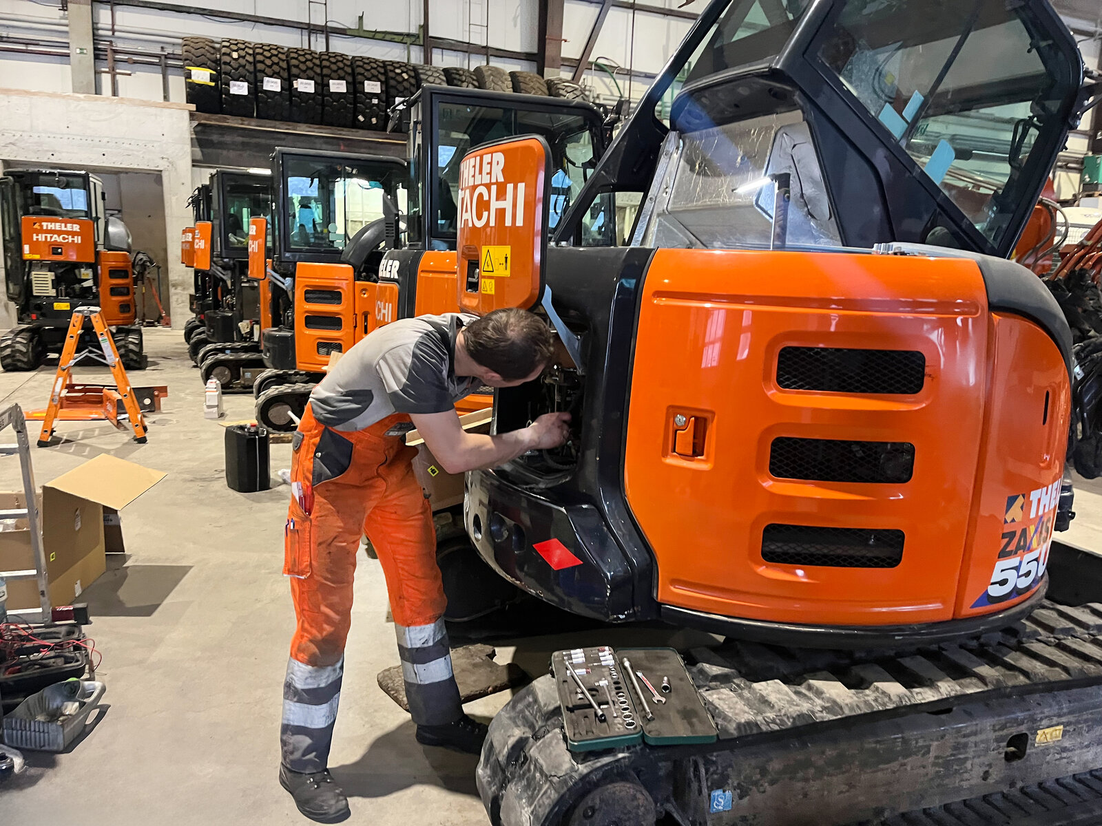 Grâce à des contrôles réguliers, des réparations et des remises en état, ainsi qu'à un service et un entretien conforme au plan de maintenance, chaque machine est prête à l’emploi et garantit des performances maximales. Ce service complet, associé à l’utilisation de pièces de rechange d’origine, permet au groupe Theler de poursuivre la réalisation de ses projets de construction de manière fiable et dans les délais, qu'il s'agisse de génie civil, de travaux spéciaux, de construction industrielle et en béton, de construction souterraine ou de démolition.